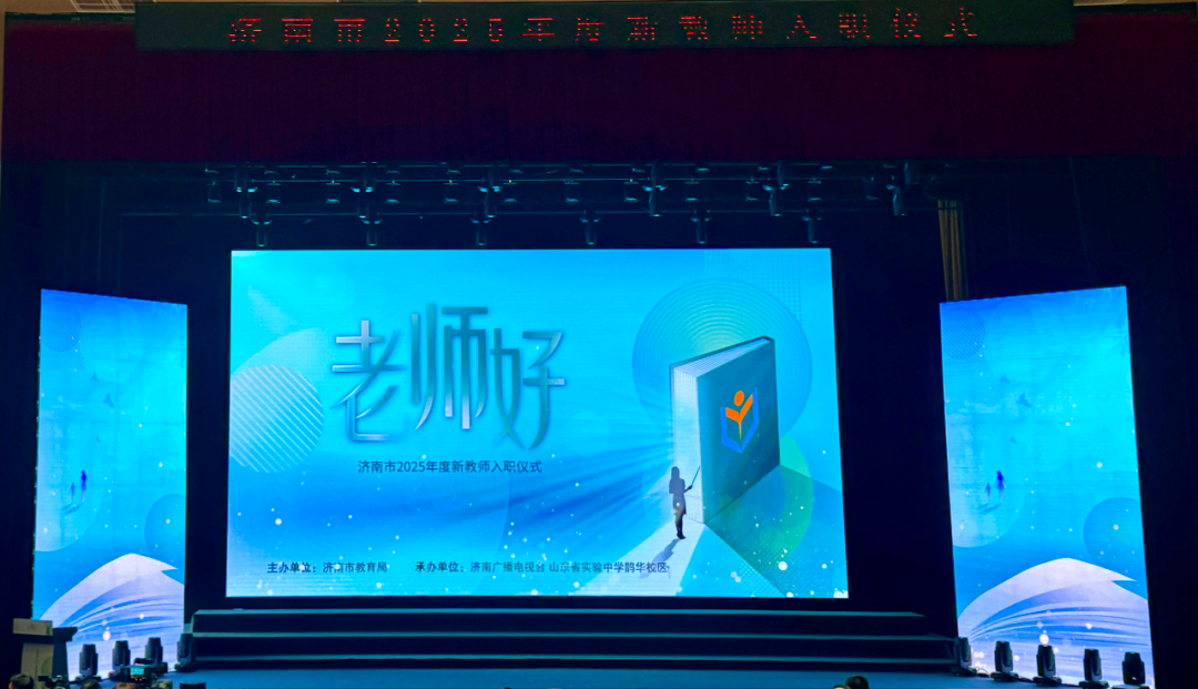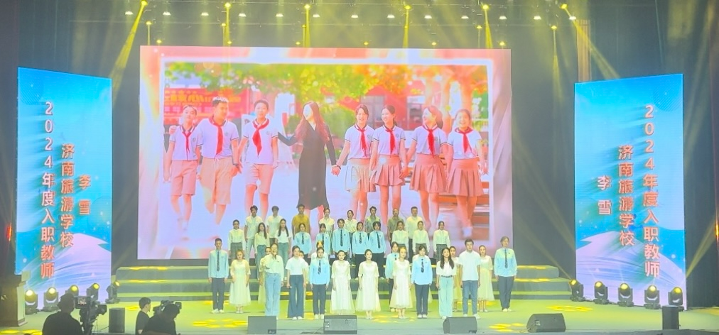 仪式上,济南市教育局党组书记、局长,市委教育工委常务副书记王纮讲话并寄语新教师。 三位优秀教师代表分享教育教学心得,现场新教师集体入职宣誓,仪式还呈现了丰富多彩的文艺展演,武术、跳绳、啦啦操等节目精彩纷呈。结尾,由济南市特殊教育中心学生带来的歌曲《如愿》感人至深,将现场气氛推向高潮,我校2024年度入职教师李雪参与表演。