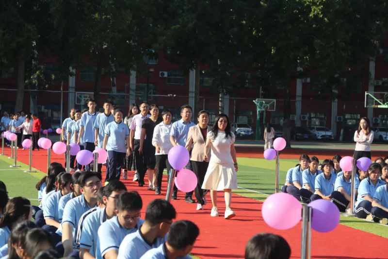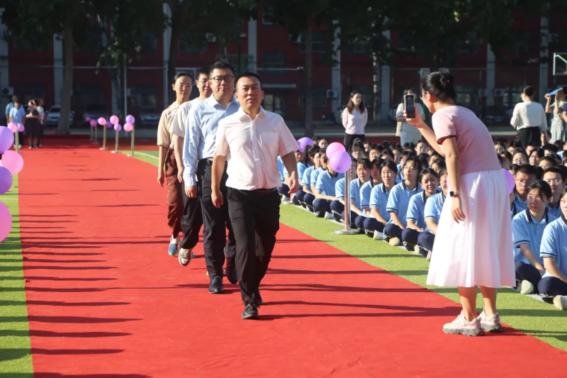副校长杨静宣读2024—2025学年省市级优秀班集体、校级优秀班集体等表扬决定。 在礼仪服务人员的引领下,受到表扬的省级、市级优秀班集体的班主任团队,校级优秀班集体、红旗团支部班主任团队及学生代表,各班级群星代表以及假期实践活动优秀团体代表依次走过红毯,登台领奖,全场响起热烈掌声,向他们表达祝贺与敬意。本次开学典礼的重头戏,以“逐梦未来·沐光前行”为篇章主题,包含《烽火岁月1945》《青春担当2025》《追梦远方未来》三个主题片段,表达对过去的回忆与思考、对当下的珍惜和担当、对未来的畅想与展望,通过生动的音画效果,用诗意语言串联历史、当下、未来,增强情感共鸣。学生代表铿锵的朗诵词诠释了不同时代背景下青年人的责任与理想,将历史的回响、当下的奋进与未来的憧憬紧密相连。他们以饱满的情感与昂扬的姿态,带领全场师生穿越时空,感受民族存亡之际的热血与坚守,体会新时代新征程中的使命与担当,展望美好明天中的无限可能与希望。 教师代表张敏、刘明皓献词《薪火相传,吾辈当强》。他们以深沉而激昂的语调,将厚重的抗战精神与崭新的时代使命紧密融合;追溯历史烽烟中先辈的坚守与牺牲,又立足当下,呼吁青年一代铭记民族之魂、勇担复兴之责。 随后,校党委书记刘波以《在历史的坐标上,接好时代的接力棒》为题,从历史、现实、未来三个维度,结合学校发展与时代要求,提出新学期三点期望:做好手中事,心怀大格局;练就强心脏,稳住别慌张;从当下做起,为热爱续航。勉励全体师生不忘历史、珍惜当下、勇担使命。“愿我们怀好奇之眼、持勇敢之心,在这个秋天共同开启主动求变、蓬勃生长的新篇章!” 最后,全体师生齐诵并合唱《少年中国说》,表达济旅人发愤图强、立志报国的决心和担当。 仪式结束后,学生有序回班领取“未来寄语卡”,写下自己的承诺与目标,粘贴在班级风采展示栏上,共同见证成长愿景,让承诺可见可触,成为新学期乃至一生追求和发展的激励源。