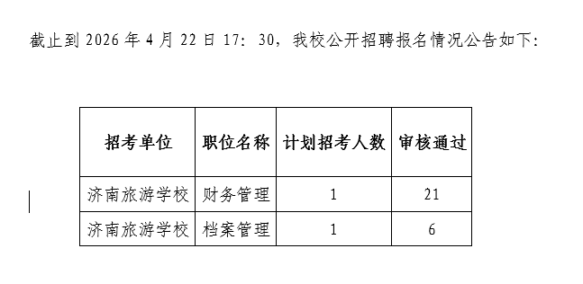 济南旅游学校2026年公开招聘报名情况公告