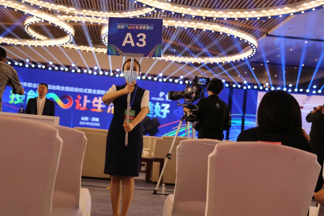 本次活动共涉及7个展馆、8个大小不等的会议论坛活动场所。职业技能大赛共有4个赛项集中在场馆内。济南旅游学校负责全部场所的志愿服务的组织工作, 学校政教处主任宗金艳为具体负责人;其中,学校由361名师生组成的志愿服务队是盛典的服务生力军,他们的身影活跃在各展馆、各主要会场及展示场所; 他们凭借服务国家级赛事的经验和水准,凭借着平时在礼仪、言行举止细节方面的努力训练,让来自全国各地的嘉宾们宾至如归,成功展现了济南作为全国 文明城市的文明小市民风采。 综合组的师生主要负责黄河厅里的大型会议、论坛等活动的导引服务、礼仪服务;急工作所需,做好任何服务。