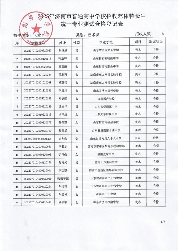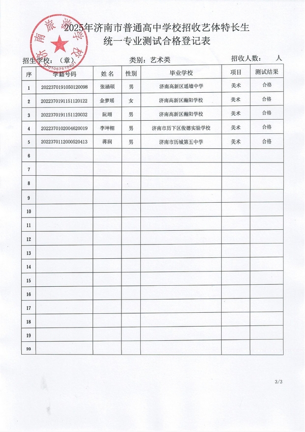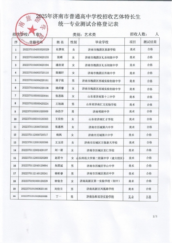 2025年济南旅游学校艺体特长生专业测试合格名单公示