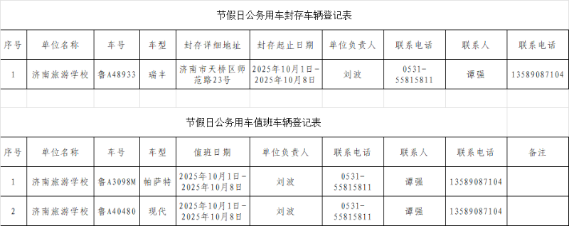 济南旅游学校2025年国庆节公车封存情况公示